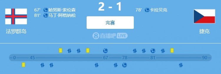 在10月13日的世界杯赛 欧预赛中,欧洲杯直播吧世界排名仅第136法罗群岛在主场作战 以2-1的比分战胜捷克,爆出巨大冷门。而捷克队也因为这场失败 在与克罗地亚的角逐 中处于劣势,现多赛一场追赶 3分。