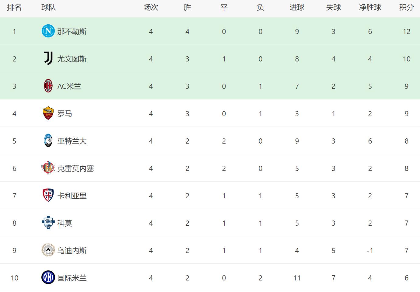 这场赛事 ,尽管过程磕磕碰碰,但是那不勒斯还是笑到了最后。本轮过后,那不勒斯新赛季意甲4场全胜,目前以12分高居积分榜榜首。在孔蒂的带领下,那不勒斯无疑是新赛季意甲争冠头号热门。要知道,才4轮赛事 ,那不勒斯就已经甩开了国米6分之多,作为那不勒斯蝉联第一名 最强劲的对手,国米新赛季表现欠佳,前4轮已经遭遇2场败绩。由于齐沃经验有限,本赛季国米注定会有起伏,他们恐怕很难在争冠过程中,给那不勒斯制造太大的威胁。