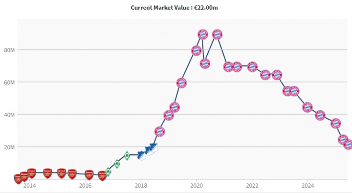 随着他表现的复苏,图片报也报道称拜仁不排除与格纳布里续约。现年30岁的格纳布里现身价2200万欧,与拜仁的合同将在明年到期。在2020年,他的巅峰期 身价曾高达9000万欧,19/20赛季也是他在拜仁的最佳赛季,他单赛季为拜仁出场46次,贡献23球14助。