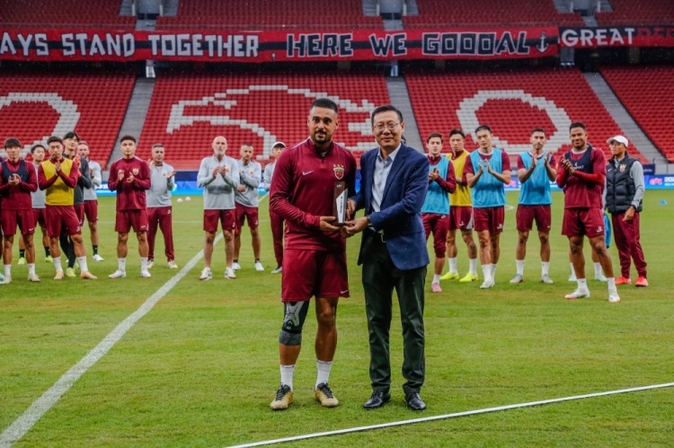 今天的官方练习 开始前,上海海港为莱昂纳多和李帅举行颁奖典礼
