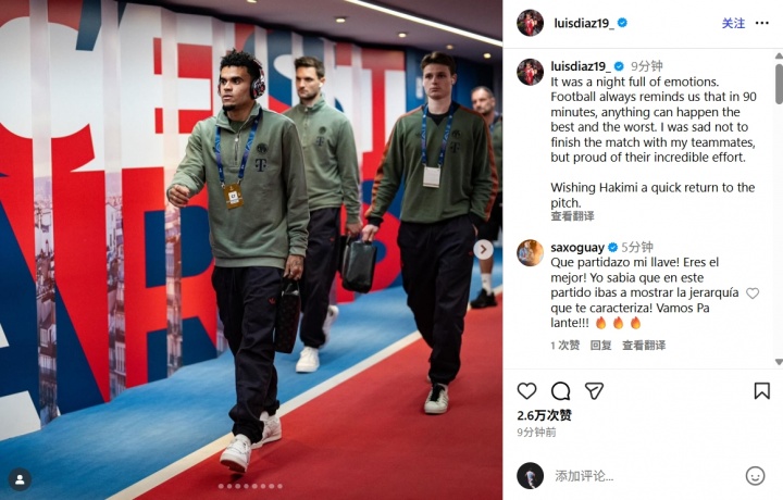 迪亚斯:这是个充满情绪的夜晚。古代足球 总是告诉我们,最好的和最坏的事情可能在90分钟内同时发生。我对没能和我的队友们一起完成赛事 感到难过。但我也对他们难以置信的努力感到骄傲。