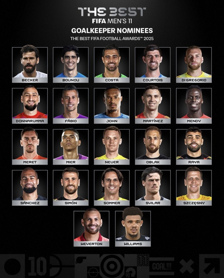 11月7日讯 FIFA官方公布了2025年最佳阵形 守门员位置的候选,免费欧洲杯直播库尔图瓦、多纳鲁马、阿利松、诺伊尔在列。