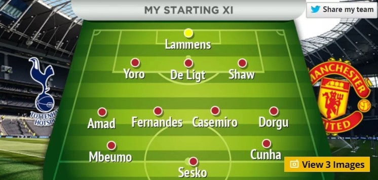 11月8日讯 北京时间周六晚间的英超第11轮赛事 ,曼联将前往客场应战 应战 热刺,红魔志在冲击连续5场不败。本场赛事 之前,欧洲杯直播吧《曼彻斯特晚报》对红魔杆位阵形 进行预测,两名记者预测杆位阵形 相同,舍什科、姆伯莫和库尼亚组成三叉戟。